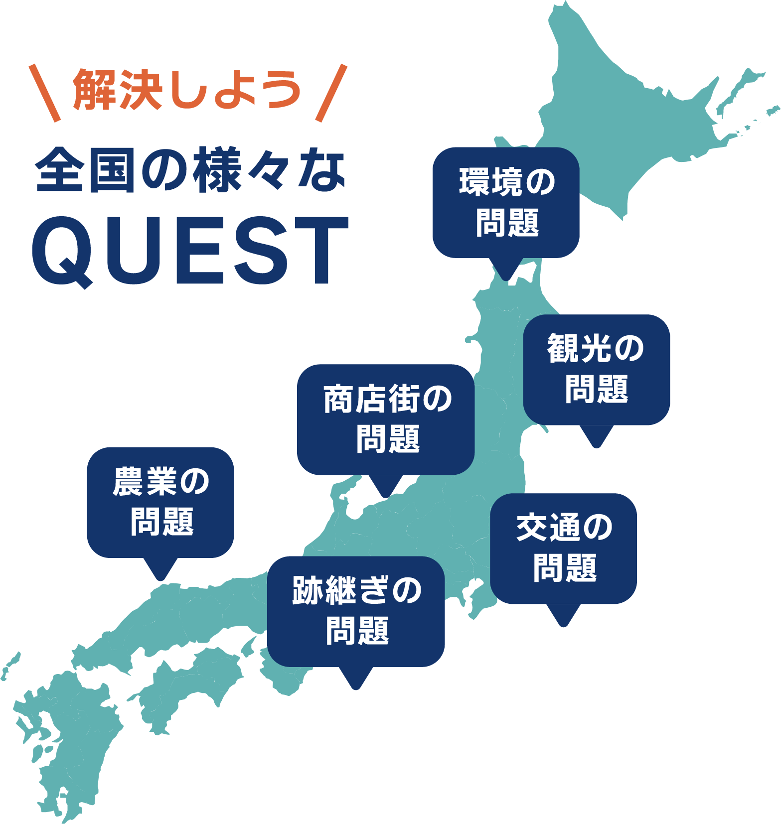 世の中に存在するリアルな問題(クエスト)をテーマにした学びを通して、本質的な課題解決とは何なのかということを自ら深く考えます。答えのない問いに対して、リサーチ・アイデア・クリエイト・プレゼンテーションのワーク内容をチームで取り組み、世界で一つだけの課題解決策を創出していくプログラムです。
